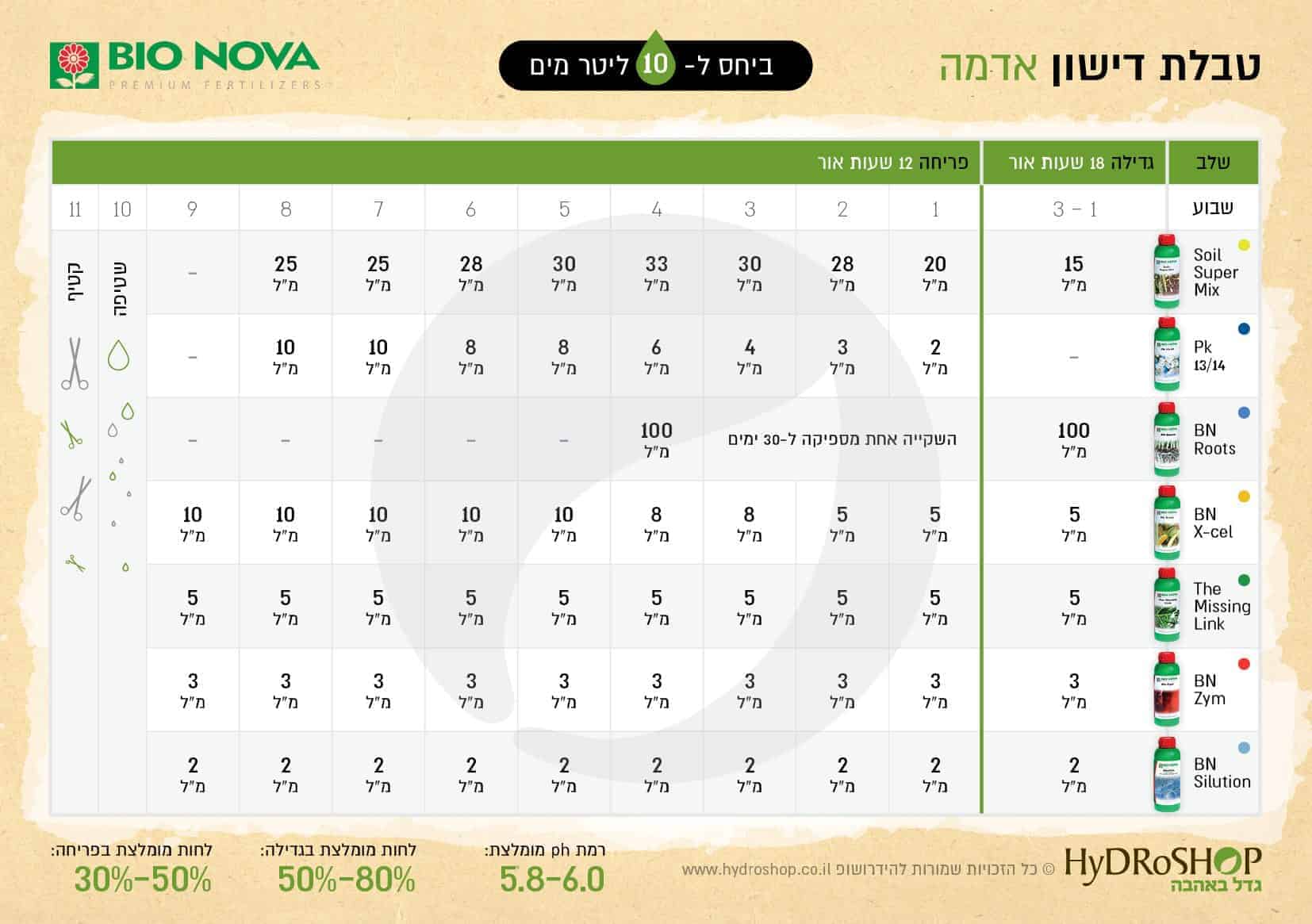 ב- CANNAZYM וב-CANNABOOST אין להשתמש יותר מ-4 ימים במאגר. תוסיפו COCO A ראשון למאגר תערבבו היטב ורק לאחר מכן תוסיפו את B